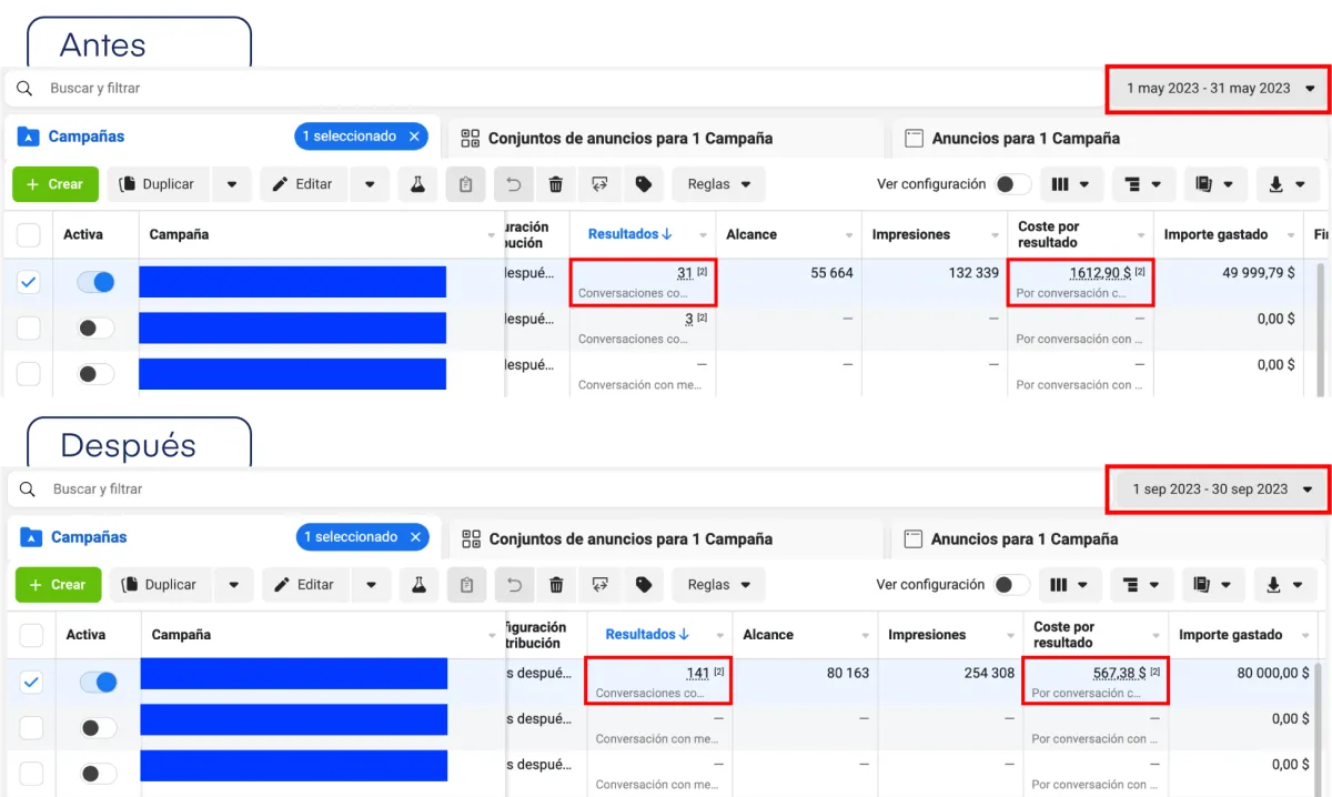 Cliente nicho Tratamientos – Plataforma Meta Ads